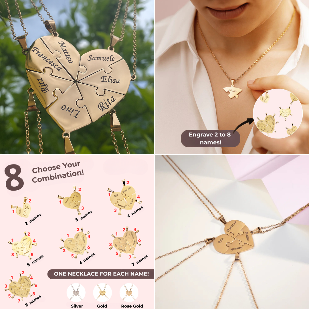 Capture the essence of love with this elegant heart necklace, a meaningful piece designed to celebrate connection and affection. The necklace features a beautifully crafted heart pendant that can be styled in 2 up to 8 layers, offering versatile looks—from subtle and romantic to bold and expressive.